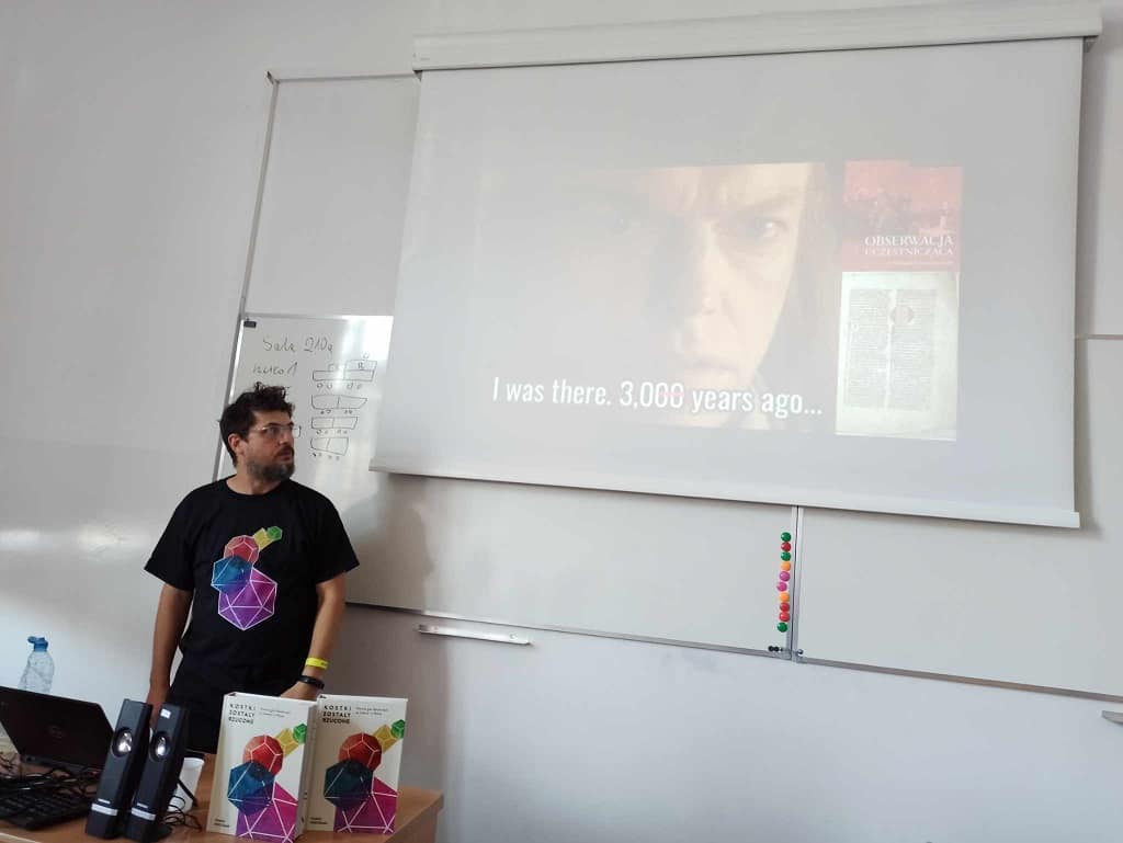 Nieco książek podpisałem (to zawsze miłe), w panelu wziąłem udział, prelekcje wygłosiłem (slajdy jak zwykle tu), “Kostki” rzuciliśmy wspólnie, zespołowo, czytelnikom do czytania 😉