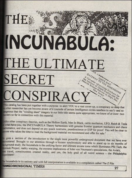 Pojawiła się choćby Ong’s Hat/Incunabula, czyli wielowątkowa opowieść o otwartym zakończeniu poświęcona alternatywnej nauce, teoriach spiskowych, równoległych wymiarach i magii (uczestnicy badali umieszczone w internecie manuskrypty i manifesty, spotykali się i badali „nawiedzone” miejsca). Inny przykład to Publius Enigma, które wywołał szum wokół płyty The Division Bell zespołu Pink Floyd twierdząc, że coś na niej ukryto. Użytkownicy ówczesnej sieci poszukiwali wskazówek, a muzycy dokładali swoje trzy grosze, bowiem podczas koncertów w wybranych momentach pojawiał się napis „Publius Enigma”. Zagadki nigdy publicznie nie rozwiązano i nie wyjaśniono, choć trzy lata po pierwszym poście Publius ogłosił, że tajemnica została ujawniona.