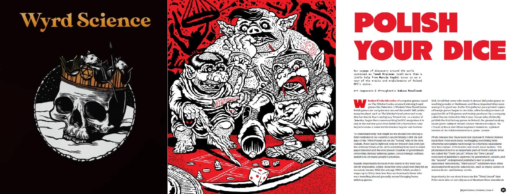 W nadchodzącym numerze czasopisma Wyrd Science (Vol. 1 / Issue 6) pojawił się mój artykuł (napisany z silnym wsparciem Marcina Seji’ego Segita) poświęcony rynkowi gier fabularnych w Polsce. Oczywiście został istotnie skrócony (taki już mój los, że piszę za dużo), ale tytuł się ostał: Wypolskuj swoje kostki :).