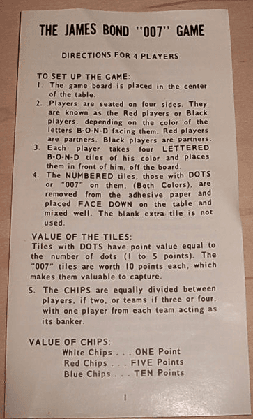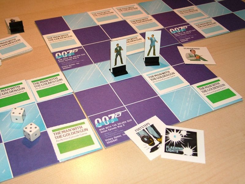 Oczywiście nie zamierzam opisywać wszystkich planszówek o agencie 007 🙂 Ale warto wspomnieć jeszcze choćby o 007 (1965), w którym uczestnicy grali w parach po dwu – niczym w brydżu.