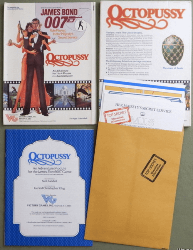 Jeśli chodzi o narracyjne gry fabularne, to dostaliśmy tylko jedną produkcję: James Bond 007: Role-Playing In Her Majesty’s Secret Service, zaliczaną do gatunku spy fiction. Za jej wydanie odpowiadało Victory Games, będące częścią Avalon Hill.