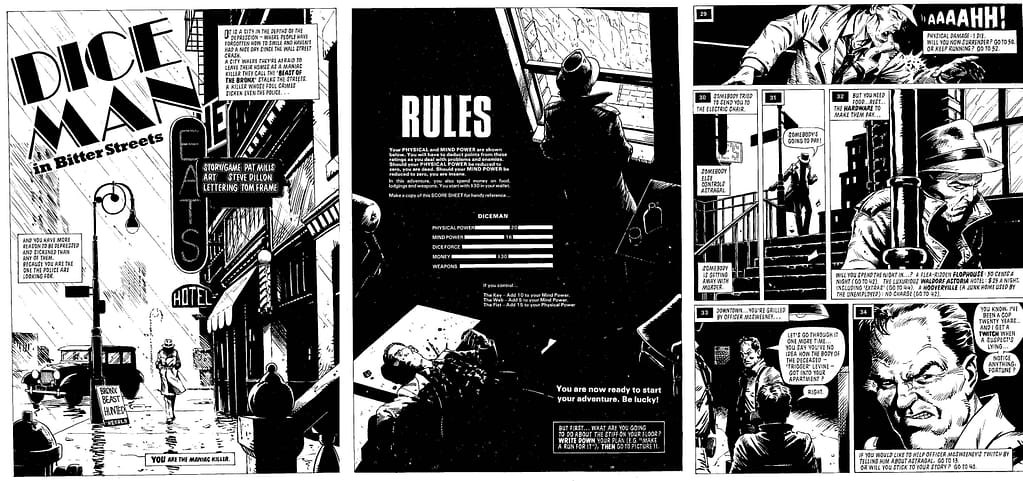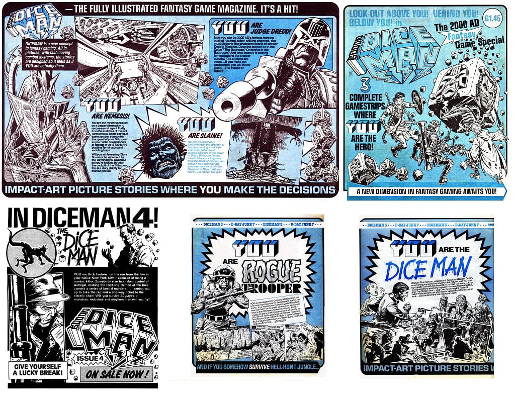 Dwumiesięcznik Diceman ukazywał się od 1986 roku i doczekał się ledwie pięciu numerów. W każdym pojawiły się dwie lub trzy historie, które miały formułę podobną do gier paragrafowych, tyle że opartych w większym stopniu na obrazkach, mniejszym na tekstach. Były to zatem tak zwane – w owych latach – solo adventures.