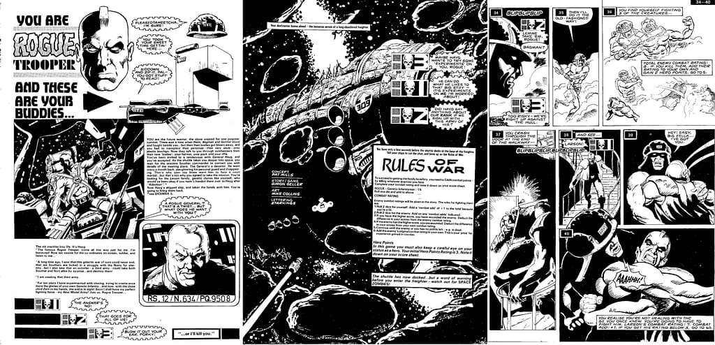 W numerze trzecim pojawiła się historia odwołująca się do komiksu Rogue Trooper. To bardzo długi cykl o jednej z najciekawszych postaci, jakie zawitały na łamach 2000 AD, w 1981 roku stworzona przez Gerry’ego Finley-Daya oraz Dave’a Gibbonsa (później narysował słynnych Strażników). Komiks opowiada o przygodach tytułowego Rogue’a, czyli genetycznie zmodyfikowanego, błękitno-skórego super żołnierza piechoty, któremu towarzyszy trzech towarzyszy mających postać biochipów. Zawierają one zabezpieczoną przed śmiercią osobowość Gunnara (podłączona do karabinu Rogue’a), Bagmana (na plecaku) oraz Helma (na hełmie).