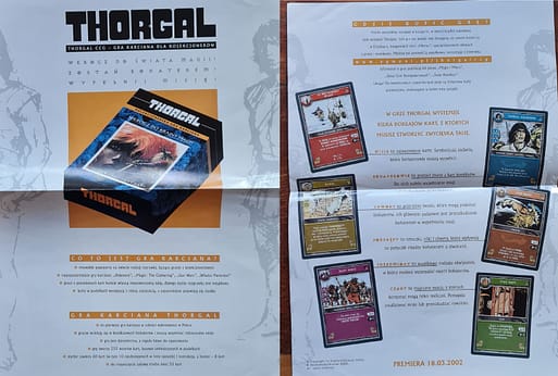 “Thorgal CCG” ukazał się w 2002 i w zamierzeniu był projektem ambitnym – komiksowe kadry, licencja dogadywana z zagranicznym wydawcą, niemałe pieniądze wydane na promocje, no i sama produkcja, niezwykle wówczas kosztowna, szczególnie jeśli chodzi o druk kart. Plany były ambitne, bo i dodatek od razu przygotowany, i mistrzostwa polski organizowane po konwentach z finansowymi nagrodami, na wzór zachodnich karcianek. Do tego ulotki, artykuły w prasie…