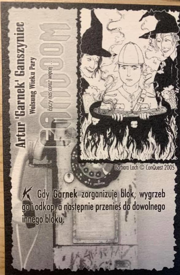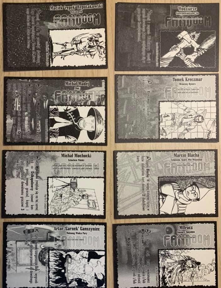 Inszą ciekawostką jest niekolekcjonerski “FanDooM” (2004), stworzony na potrzeby konwentu ConQuest przez Krakowiaków (Magdalena Madej-Reputakowska, Tomasz Z. Majkowski, Maciej Reputakowski, Michał Stachyra). Tu z kolei miałem przyjemność pojawić się na kartach jako jeden z bohaterów.