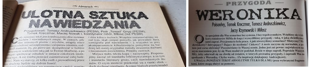 Z dodatku dowiecie się, że w MiMie pojawiło się mnóstwo dziś znanych autorów, twórców gier z (choćby Marcin Blacha – od lat CD Projekt), Michał Madej (CD Projekt RED, Ubisoft, Activision) czy Jacek Brzeziński (maczał palce m.in. W Wiedźminie 1 czy ostatnio w Werewolf: The Apocalypse – Heart of the Forest) i bez prądu (np. Krzysiek Piskorski aktualnie z Awaken Realms oraz Michał Oraczh), a także ówczesne gwiazdy fantastyki (Sterling, Kress, Gaiman, Sapkowski, Ziemkiewicz, Brzezińska) czy RPGie (Wick, Brzeziński, Majkowski, Madej/e) oraz wciąż aktywni fani (Seji, Wieczorek) tudzież wydawcy (Ramel), wreszcie graficy (Truściński, Grzechnik, Piotr Cieślińsk aka Dark Crayon oraz oczywiście Musiał).