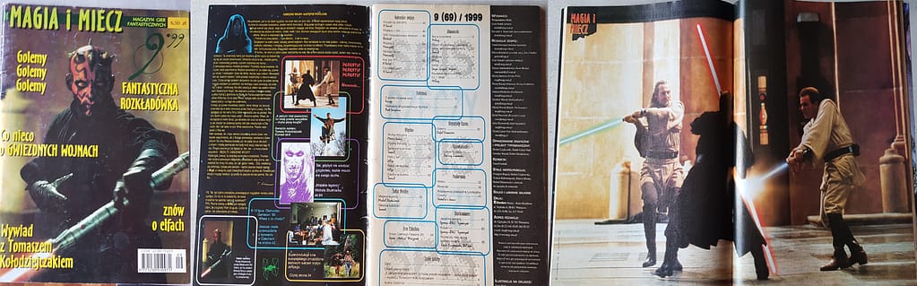 69 (9/99): Na okładce SW EP1, w środku plakat, duże zmiany redakcyjne (Miłosz zastępcą naczelnego, Szrejter zostaje sekretarzem i od człowiekiem od opowiadań, Andruszkiewicz Świat Mroku, Jurewicz DP, Kocuj Almanach, Andrzej ED, Nowak WFRP, Rafałek KC.