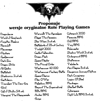 Książki w tej postaci sprzedawane były nie tylko w klubach, ale również na straganach różnych targów, takich jak Skra czy Wolumen w Warszawie. Wśród kupujących na naszym stoisku był Andrzej Miszkurka, z którym bardzo się podówczas zaprzyjaźniliśmy z racji podobnego gustu literackiego. Drugą istotną osobą dla tej opowieści był Artur Szyndler, który przyniósł ze sobą praktyczną wiedzę o RPG. Był nie tylko kupującym, ale również sprzedawał na giełdzie gady, jako herpetolog z wykształcenia. Bo na takich giełdach kupowało się i sprzedawało wszystko – sam trafiłem tam sprzedając zestawy lego, które wymieniłem na klubówki (czego w sumie teraz żałuję).