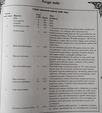 Tworząc mechanikę walki, sięgnęliśmy po wiedzę czerpaną z zaangażowania w bractwa rycerskie, do których należał Maciek. Przejrzeliśmy też odpowiednie źródła, sięgając po szermierkę historyczną, ale okraszając wszystko RPGowym sznytem. Tu z kolei wiele sugestii napłynęło od Miłosza Brzezińskiego, podówczas aktywnego fana przeróżnych sztuk walki. Same manewry powstały po to, by zdynamizować walkę i dać opcję rozwoju postaciom nie-czarodziejskim.
