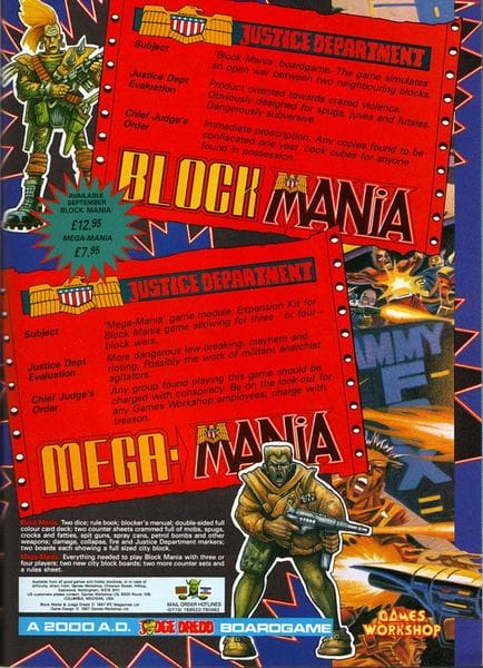 Ale to nie jedyna godna wspomnienia gra Richarda Halliwella. Pracował on nie tylko nad drugą edycją WFB (1984), ale także nad planszówką “Block Mania” (1987), której akcja toczyła się w uniwersum Sędziego Dredda. Potem przyczynił się do sukcesu post-apokaliptycznego figurkowego “Dark Future” (1988), a także wspierał klasycznego TRPGa “Judge Dredd: The Role-Playing Game” przygodą-dodatkiem “Slaughter Margin” (1988).
