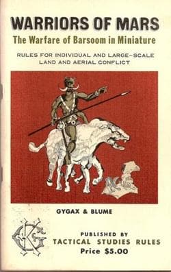 Ba, pierwsza wydana przez TSR gra to właśnie planszowe Cavaliers and Roundheads – to dzieło Gary’ego Gygaksa i Jeffa Perrena ukazało się w 1973 roku. A już rok później na rynku zadebiutował bitewniaczek Warriors of Mars, inspirowany książkowym cyklem Edgara Rice’a Burroughsa, opowiadającym o przygodach Johna Cartera na Marsie. To była gra Gygaksa i Briana Blume’a. Ten ostatni stworzył też Panzer Warfare, jedną z pierwszych gier korzystających z niewielkich figurek maszyn bojowych (tzw. micro armour). A ukazała się ona, jakże by inaczej – nakładem TSRu – w 1975 roku.