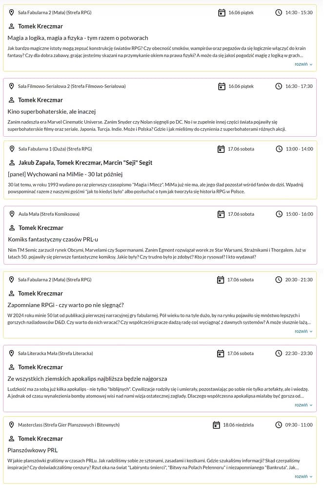 Wychodzi na jakaś drugą konwentową młodość – tylko mniej się szlajam po knajpach i % nie tykam, ale liczba prelekcji jak w latach 90. Kto by się spodziewał 😉